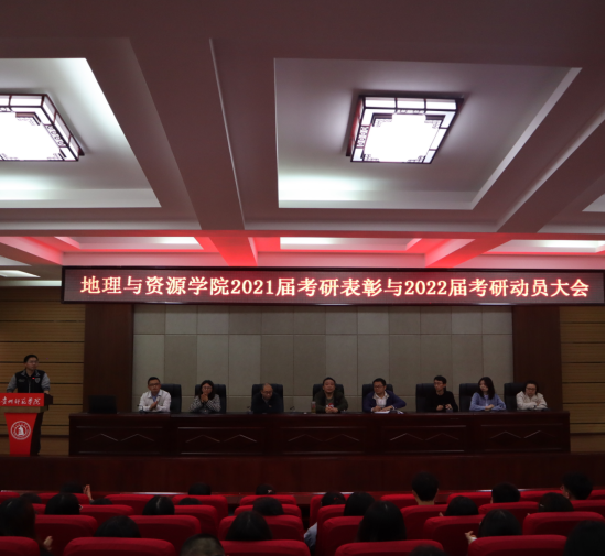 4月27日,为树立典型,激励先进,总结经验,发扬成绩,调动考研热情,促进学院人才培养高质量发展,kaiyun开云官方网站2021届考研总结表彰暨2022届考研动员大会在文韬苑道德讲堂隆重举行。学院党总支书记吴亚平教授、副院长罗光杰博士、邓家彬博士、学业导师代表徐秀月博士、自然地理系系主任张伟博士、资源环境系系主任刘蕊博士、地理信息科学系系主任周光红博士、学院党政办公室况江老师、2017级辅导员杨鸿雁博士、学院兼职班主任十余位博士以及各年级学生代表二百余人参加会议。会议由学院党政办公室主任宗积章主持。