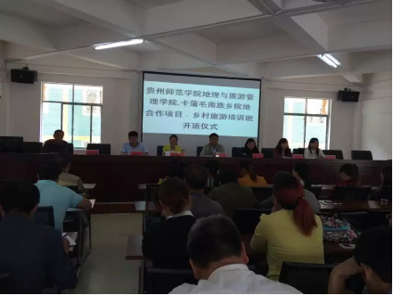 5月19日至5月20日,旅游教研室主任李倩、白雪、郜捷、吴红梅四位老师在为期两天的乡村旅游培训工作中开展了对旅游服务礼仪、旅游餐饮管理、旅游法规和旅游导游服务四个方面进行培训,培训的对象有乡干部、农家了经营户、旅游商品销售人员、景区服务人员等。卡蒲毛南族乡政府对此次工作非常重视,罗敏书记时常进课堂查看学员听课情况,索绍兴乡长全程陪同并听取培训内容,同时负责学员的上课纪律和考勤情况。