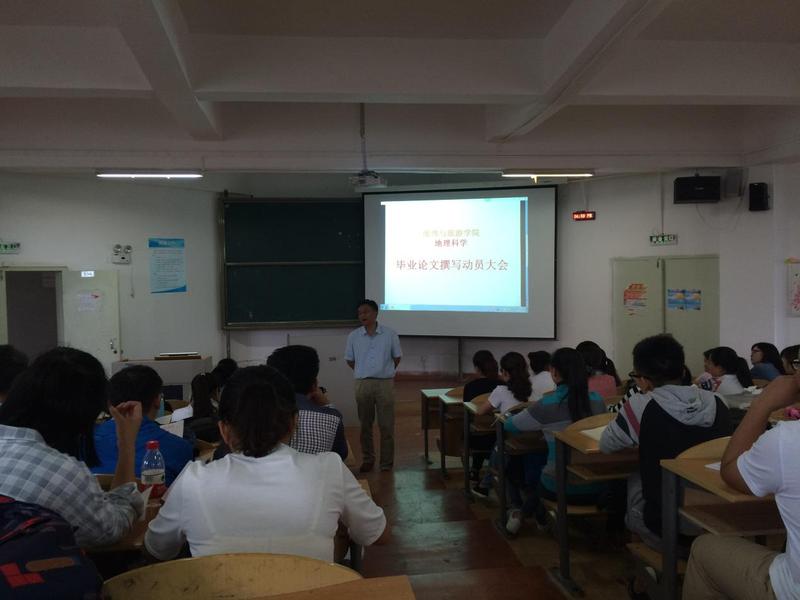 为进一步加强地理与旅游学院2017届本科毕业论文工作,提高本科毕业生毕业论文质量,6月15日下午kaiyun官网组织召开了2013级毕业论文撰写动员大会。