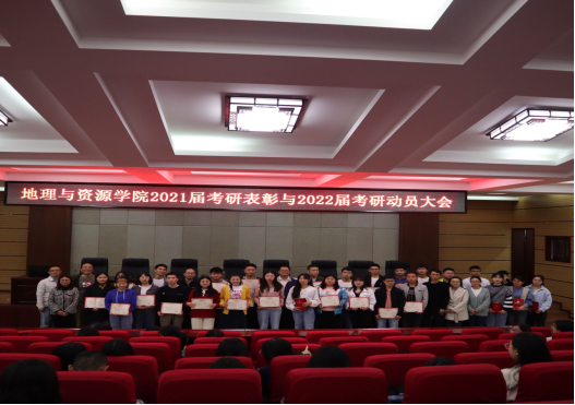 按照预定方案,首先,由副院长罗光杰作2021届考研工作总结报告。罗光杰对2021届学子们在考研过程中取得的优异成绩表示祝贺,激励地资学子砥砺前行,脚踏实地的走好人生的每一步路。学院党总支书记吴亚平对总结报告予以肯定,高度赞赏学院2021届考研工作成绩,并提出2022届学院考研工作奋斗目标,殷切期望2022届考研工作再创佳绩。紧接着罗光杰宣读了《kaiyun开云官方网站关于表彰2021届”考研先进集体和个人”的决定》。资源环境系获得学院“考研工作先进集体”荣誉,罗洋、罗绪强、张淑卿、郑延丽、杨鸿雁、刘丹丹6位老师获得学院“考研工作先进个人”荣誉,赵升等36名同学获得学院“考研先进个人”荣誉。