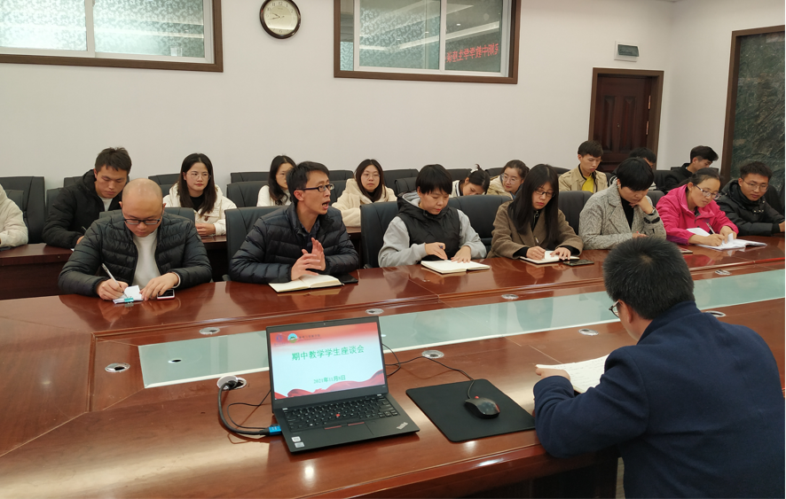 为进一步提升教学质量,更好地为学生服务,11月8日下午,kaiyun开云官方网站在宁静楼325会议室就本学期的课程设置预安排、教师教学方法和教学手段、教学服务与管理、教学设施设备等方面进行了2021-2022学年度第一学期期中教学工作学生座谈会。院长罗绪强、教学负责人邓家彬、辅导员郜红娟、刘丹丹、韩默然,徐秀月、赵志猛、况江等老师及各班班委参加了此次会议。会议由邓家彬主持。