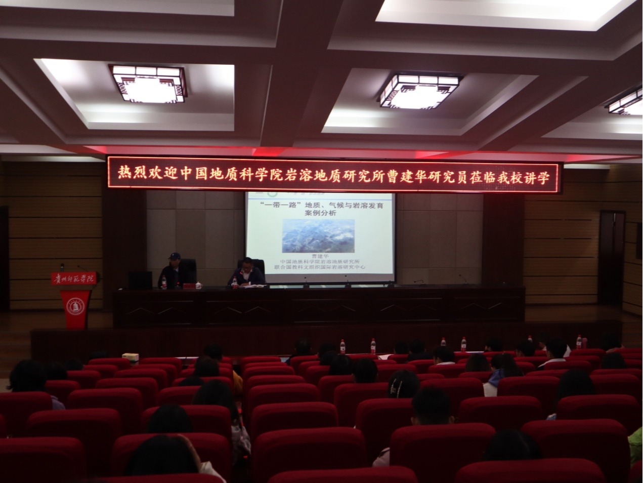 2021年11月24日上午,受kaiyun开云官方网站、贵州山地研究院、贵州省流域地理国情监测重点实验室的邀请,中国地质科学院研究所曹建华研究员做客kaiyun官网道德讲堂,为师生做了题为“一带一路地质、气候与岩溶发育案例分析”的学术讲座,讲座由贵州山地研究院院长、kaiyun开云官方网站副院长罗光杰主持,kaiyun开云官方网站相关教师和学生参加此次讲座。