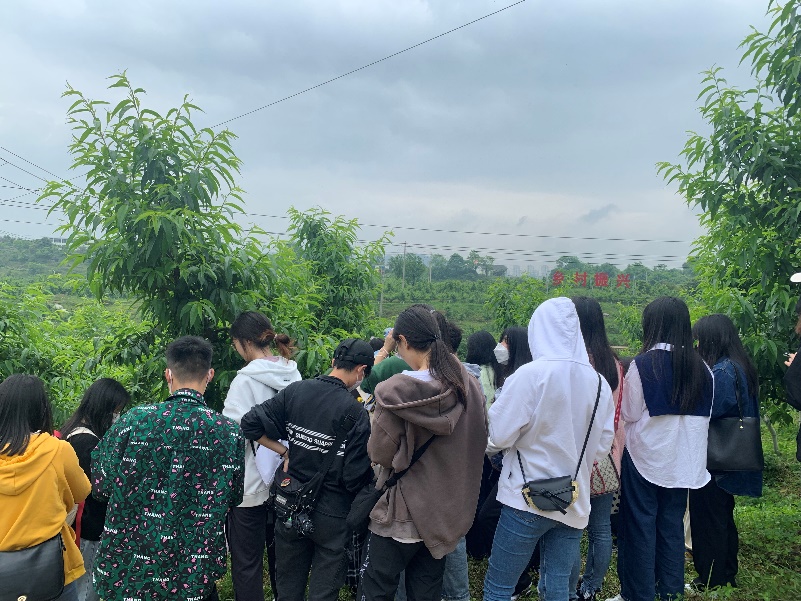 早上九时,农资环一行54人乘校车到达金山村精品蔬菜果园示范基地。基地位于阿哈湖金山村金家山,成立于2018年12月,于2019年1月启动,是贵阳市唯一一家集民企、国企和村集体经济为一体的混合所有制的果园示范基地。在技术员的带领下,学生先参观了蔬菜示范基地,了解了种植大棚现状以及学习了该基地蔬菜种植的水肥管理与田间管理。参观现场,学生纷纷提出自己的疑惑,随着技术员的讲解,学生们又更近一步地了解了蔬菜种植的细节。随后,学生又到果园观摩学习,技术员演示了桃树的整枝技术。下午,技术员和课程老师现场演示了苗木嫁接技术和黄桃套袋方法。学生参与其中并亲手完成了多颗果树的套袋工作。课程最后,技术员评价了学生们的技术并鼓励学生们积极加入农业农村建设、投身乡村振兴事业。
