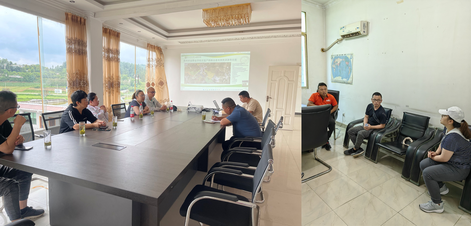 调研中与实训基地负责人焉志勇主任、刺梨示范基地总经理洪玉波总经理、西洋实业有限公司池大言部门主管进行座谈,详细了解调研对象的规模,拥有的设备设施及环境,同时向他们提出我们此行的目的并与调研的三家单位达成初步的实习基地共建意向。