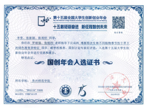 近日,第十五届全国大学生创新创业年会(简称“国创年会”)在中国矿业大学举行。本届年会以“十五载砥砺奋进,新征程智创未来”为主题,分为创新学术交流、改革成果项目展示、创业项目推介三个主题活动,同时开展国家级大学生创新创业训练计划(简称“国创计划”)十五周年荣誉表彰活动。kaiyun官网kaiyun开云官方网站罗绪强教授和化学与材料学院张桂玲教授共同指导的项目“喀斯特次生林不同植物季节性干旱下的绿色度变异特征”(项目负责人:李雪)入选本届年会学术论文项目展示。