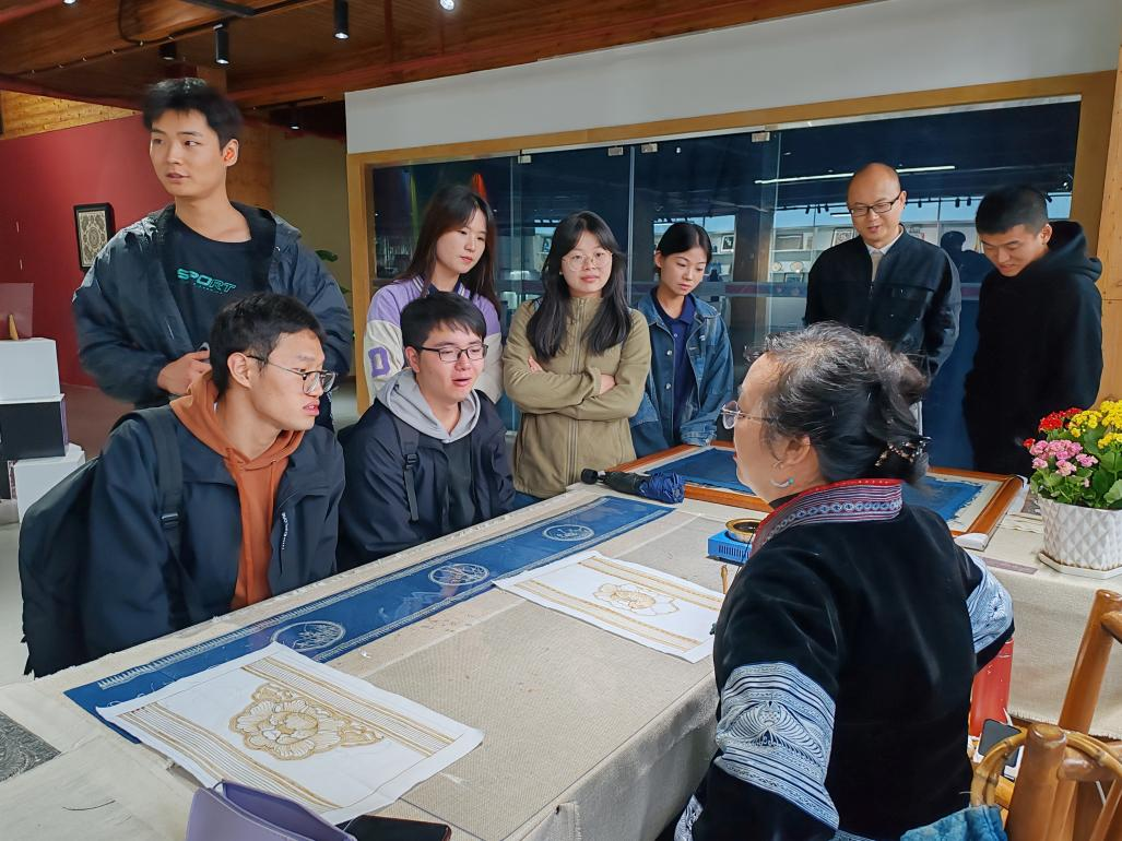 贵州非物质文化展览馆重点展示贵州非物质文化遗产的独特项目,是全国第一座省级综合类非遗馆。在展览馆工作人员的带领下,kaiyun官网师生有序参观展示厅、传承厅,全面了解贵州非物质文化遗产及其发展动态,认识人类非物质文化遗产的生产和发展规律及其与人类社会文明进步的关系。在非遗工坊,同学们争先恐后的与当日驻馆的两位国家级非遗传承人直接对话,学生们就自己感兴趣的问题进行访谈,了解非遗背后的故事,并积极实践部分非遗项目。