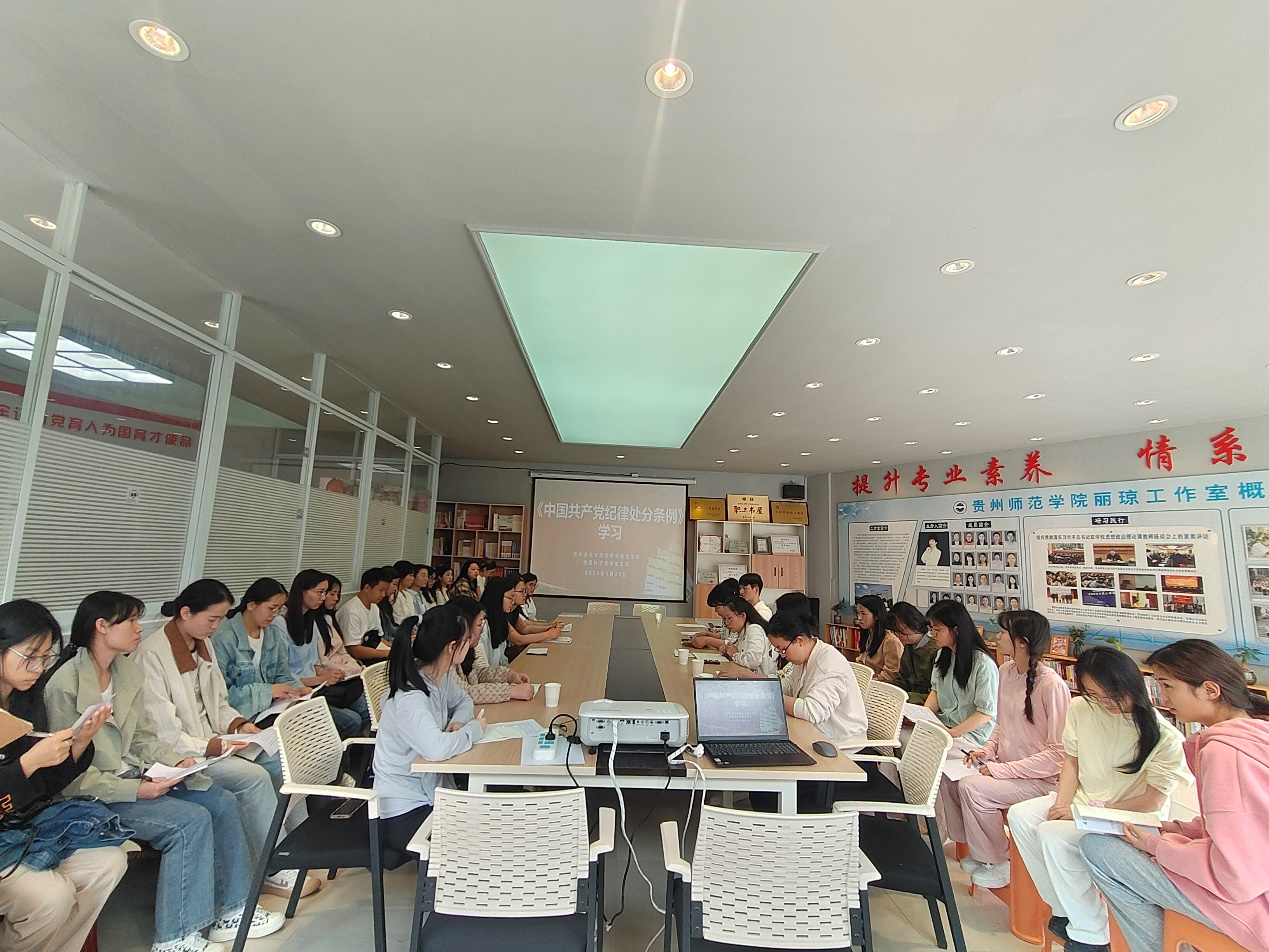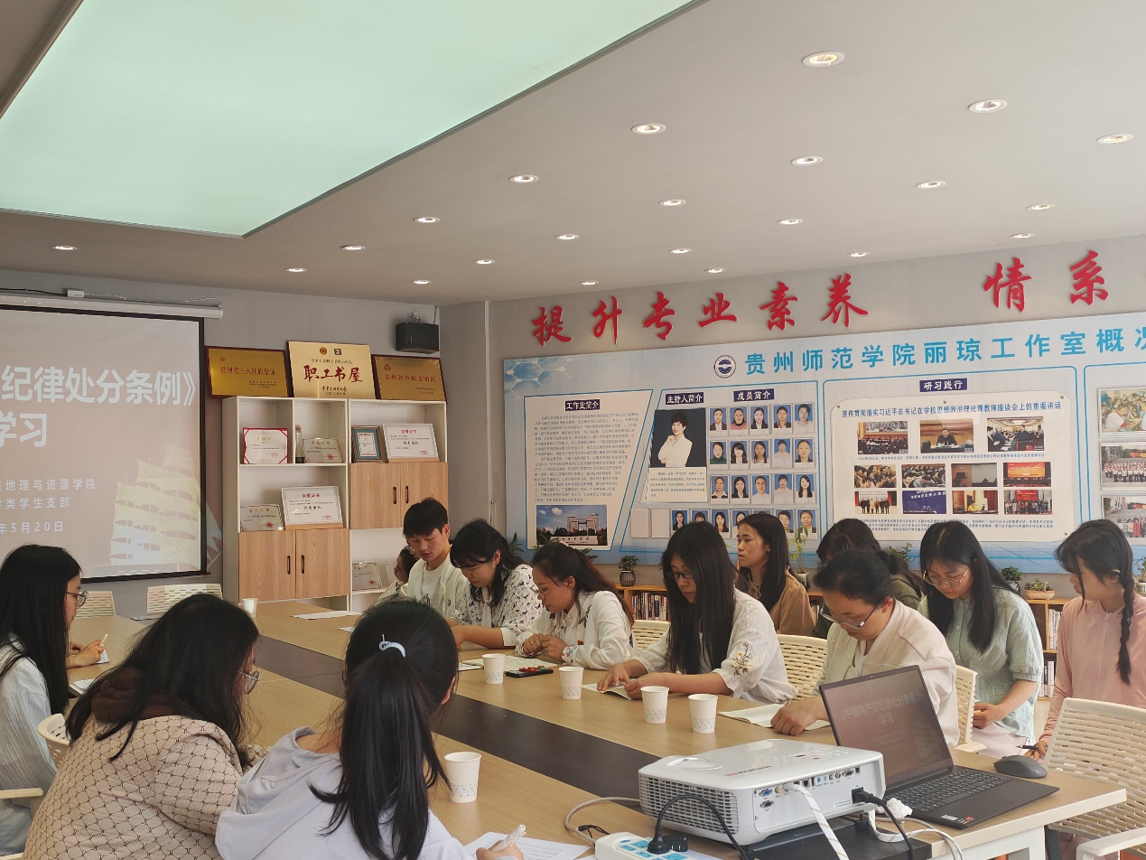 为深入学习贯彻习近平总书记关于党纪学习教育的重要指示精神,2024年5月20日中午,kaiyun开云官方网站地理科学类学生党支部在丽琼工作室开展了关于《中国共产党纪律处分条例》的学习活动。