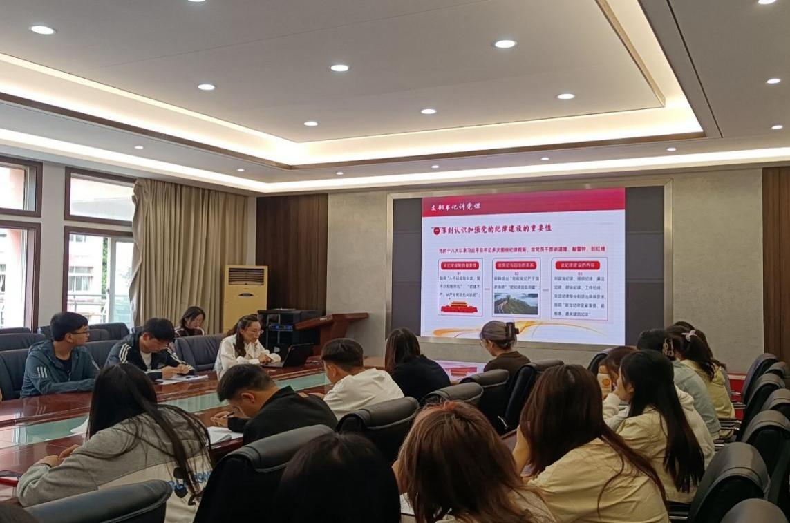 为深化党纪学习教育,提升学生党员的纪律意识,加强党的纪律建设、推动全面从严治党向纵深发展的重要举措。2024年5月30日,地理科学类学生党支部在kaiyun开云官方网站会议室开展“以党纪为标尺 做守规矩的先锋”党课学习,全体党员及预备党员同志参加此次党课学习。