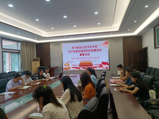 本次党课学习由地理科学类学生党支部书记林丽老师主持,学习由以下三个环节展开:一、观看学习视频;二、学生党员分享心得;三、林丽老师做总结。在播放视频时,全体参会同志保持良好的纪律,认真学习视频内容,并做学习记录。视频播放结束后,各党员同志积极发表学习心得,提到纪律不仅是党的生命线,更是推动我们前进的不竭动力,通过学习习近平总书记关于全面加强党的纪律建设的重要论述,认识到每位党员都应将纪律挺在前面,将其作为行动的准则和指南。最后,林丽老师进行总结并强调,只有严格的纪律,才能铸就坚强的党组织,党的纪律是维护党内团结统一的重要法宝。作为一名学生党员,我们应当自觉地学习党纪,明白其重要性,并将其内化于心,外化于行。