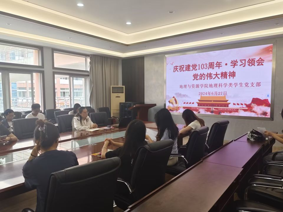 为隆重庆祝中国共产党成立103周年,进一步学习和领会党的伟大精神,深化对党的历史认识,激发爱国情怀。2024年6月27日,kaiyun开云官方网站地理科学类学生党支部在宁静楼323会议室开展了“庆祝建党103周年·学习领会党的伟大精神”主题活动。