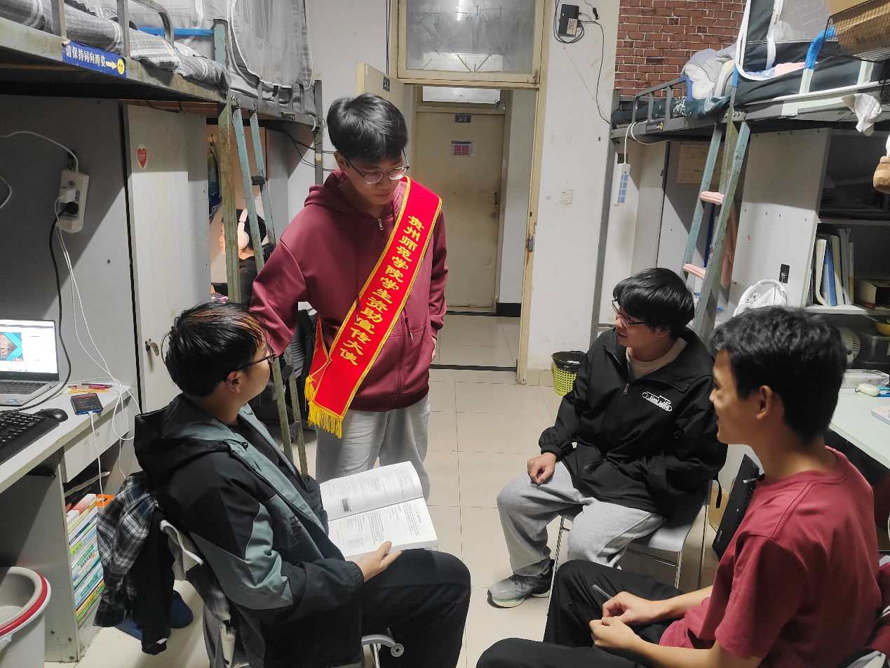 kaiyun官网资助宣传大使王新焕同学走进德园宿舍楼,深入寝室和同学们进行了面对面的深入交流,耐心细致地解答同学们关于资助政策的种种疑问,分享他关于学院资助政策的见解并相互沟通,寻求创新,共享经验,总结体会,提高宣传质量。在认真学习,深入了解资助政策的基础上,呼吁更多同学参加宣传,加大宣传力度,创新宣传方式,确保资助政策能够深入人心、真正落实,共同完成“立德树人,资助育人“这一根本任务。