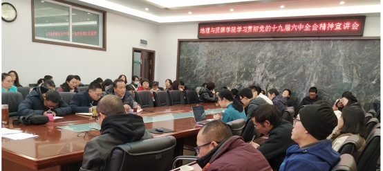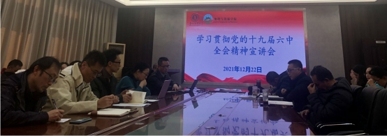 12月23日,kaiyun开云官方网站在学院会议室开展了学习贯彻党的十九届六中全会精神宣讲,宣讲人为学院党总支书记吴亚平。宣讲会议由党总支副书记、院长罗绪强主持,全体教师参加宣讲活动。